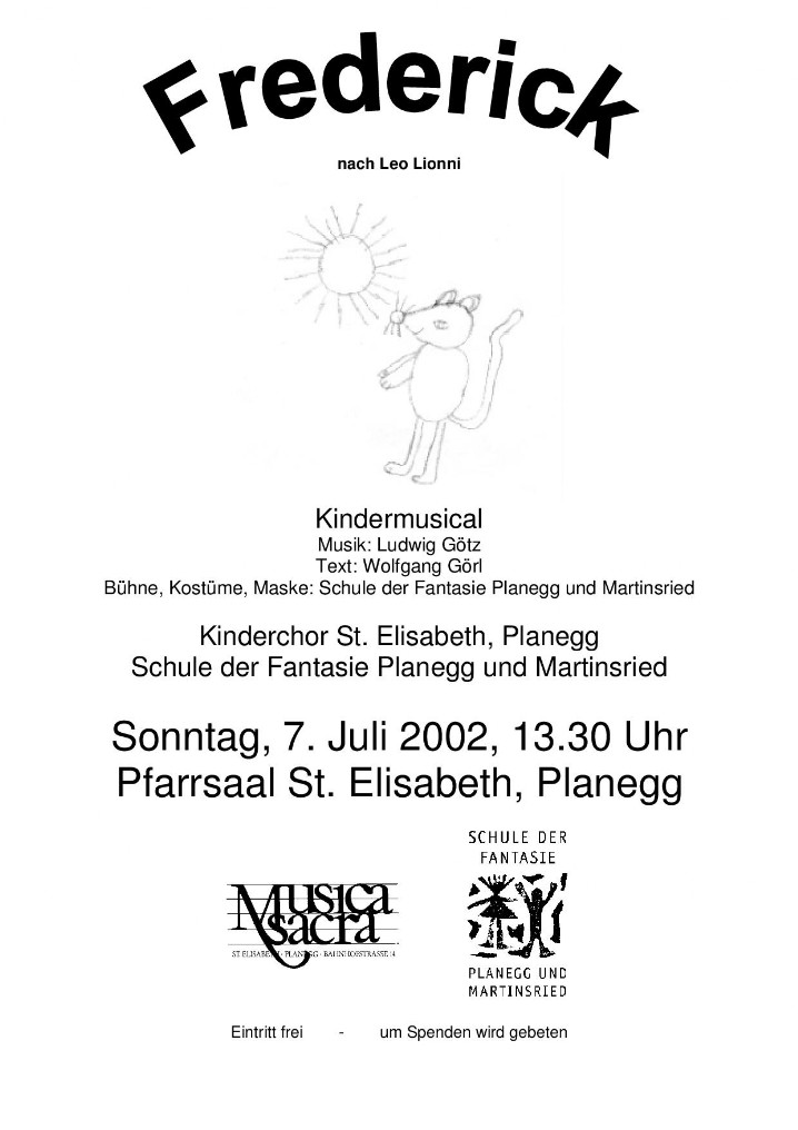 2002 Kindermusical Frederick - Schule der Fantasie Planegg und Martinsried