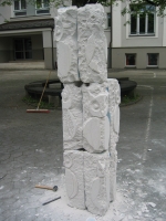 Seit Anfang 2005 hatten sich die Leiterinnen aller vier Gruppen mit den rund 50 Kindern das Thema Eule erarbeitet, danach wurde dann fleißig gehämmert und geklopft. Aus zwölf einzelnen Ytong-Stein-Blöcke wurden von den Mädchen und Buben verschiedene Eulen herausgearbeitet. Diese Einzelblöcke wurden dann zu einem Gemeinschaftswerk, einer Eulen-Stele zusammengefügt.